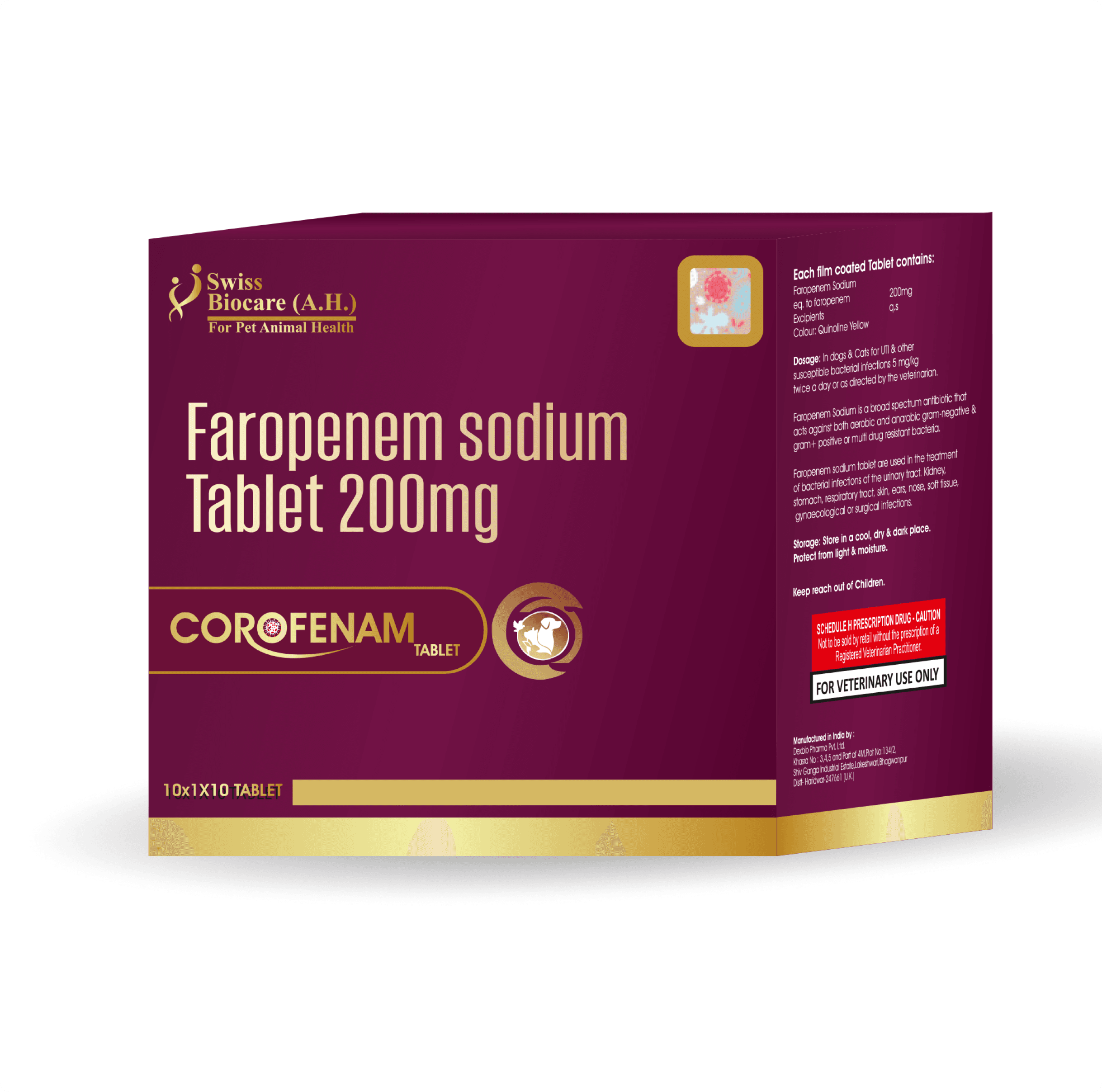 Corofenam is a broad-spectrum β-lactam antibiotic containing Faropenem, which effectively treats bacterial infections by inhibiting bacterial cell wall synthesis. It is highly effective against Gram-positive, Gram-negative, aerobic, and anaerobic bacteria, making it a preferred choice for respiratory, urinary tract, and soft tissue infections.