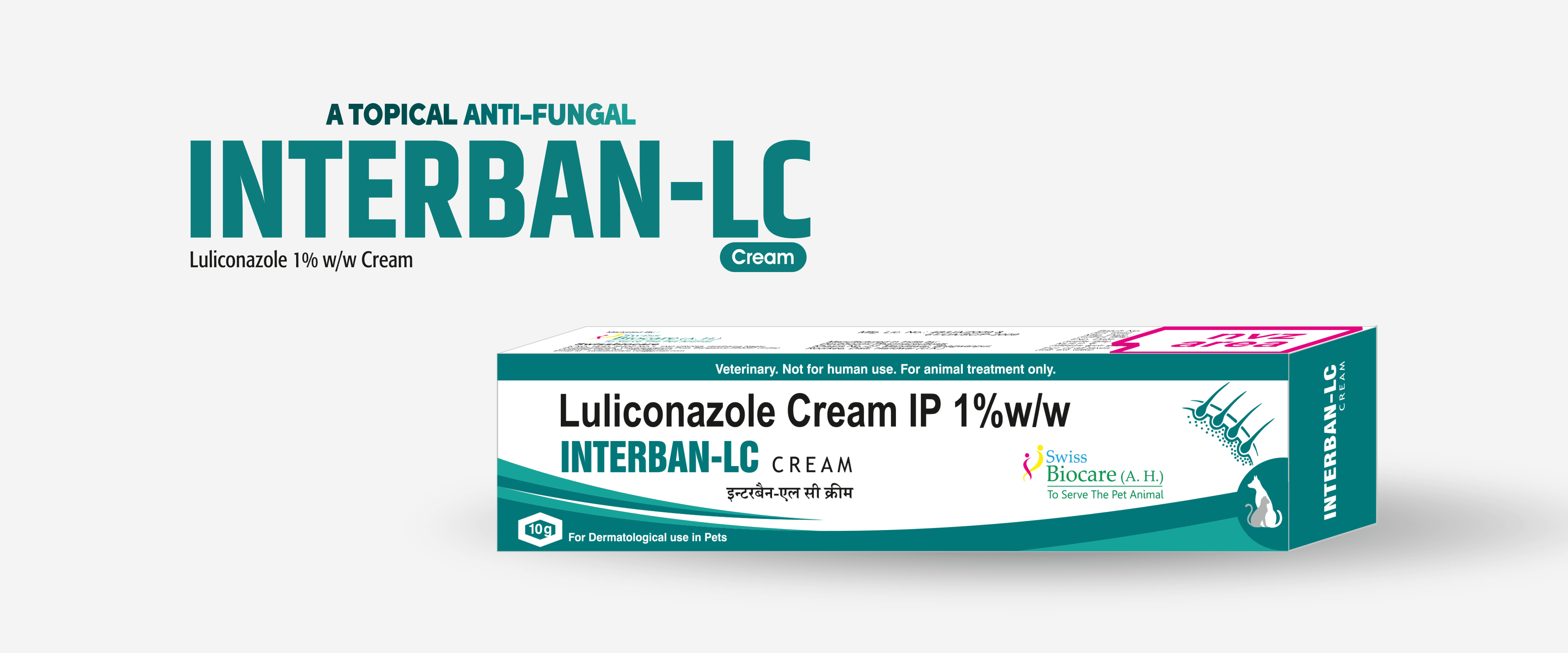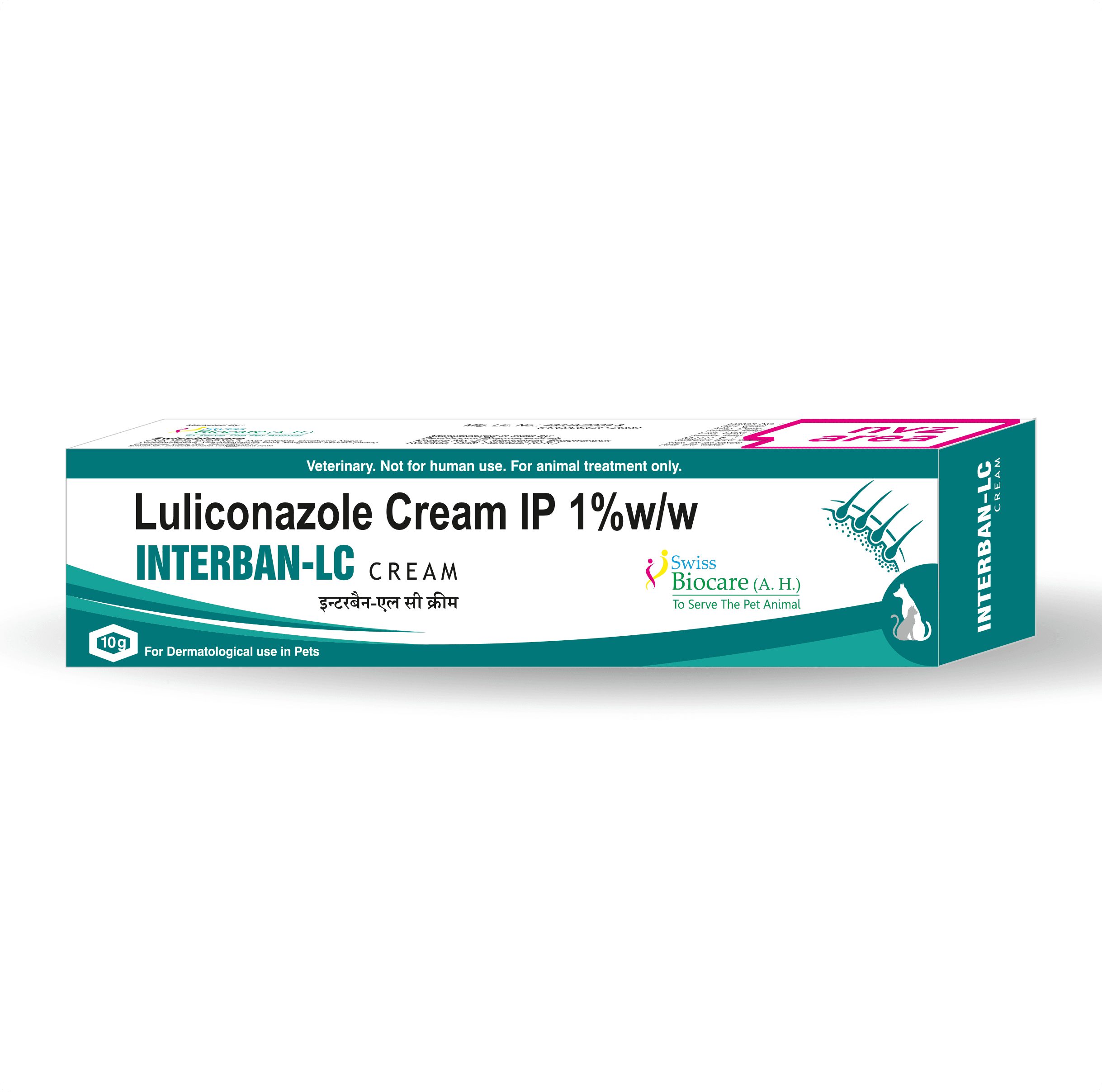 Interban-LC is a topical antifungal cream containing Luliconazole 1%, specifically formulated to treat fungal infections in pets. It effectively targets Microsporum species, Malassezia, and dermatophytes, helping to eliminate skin infections quickly and safely.