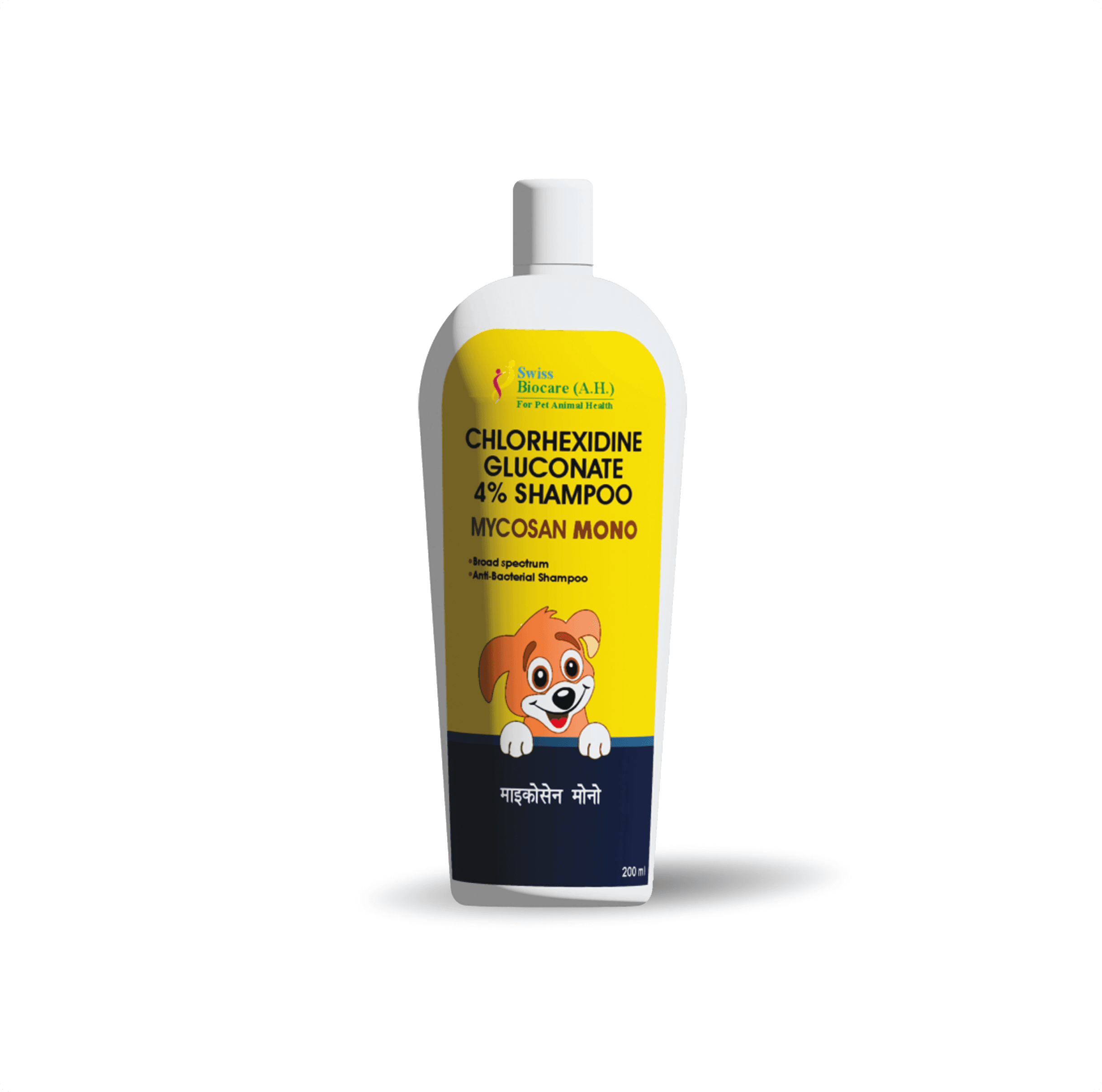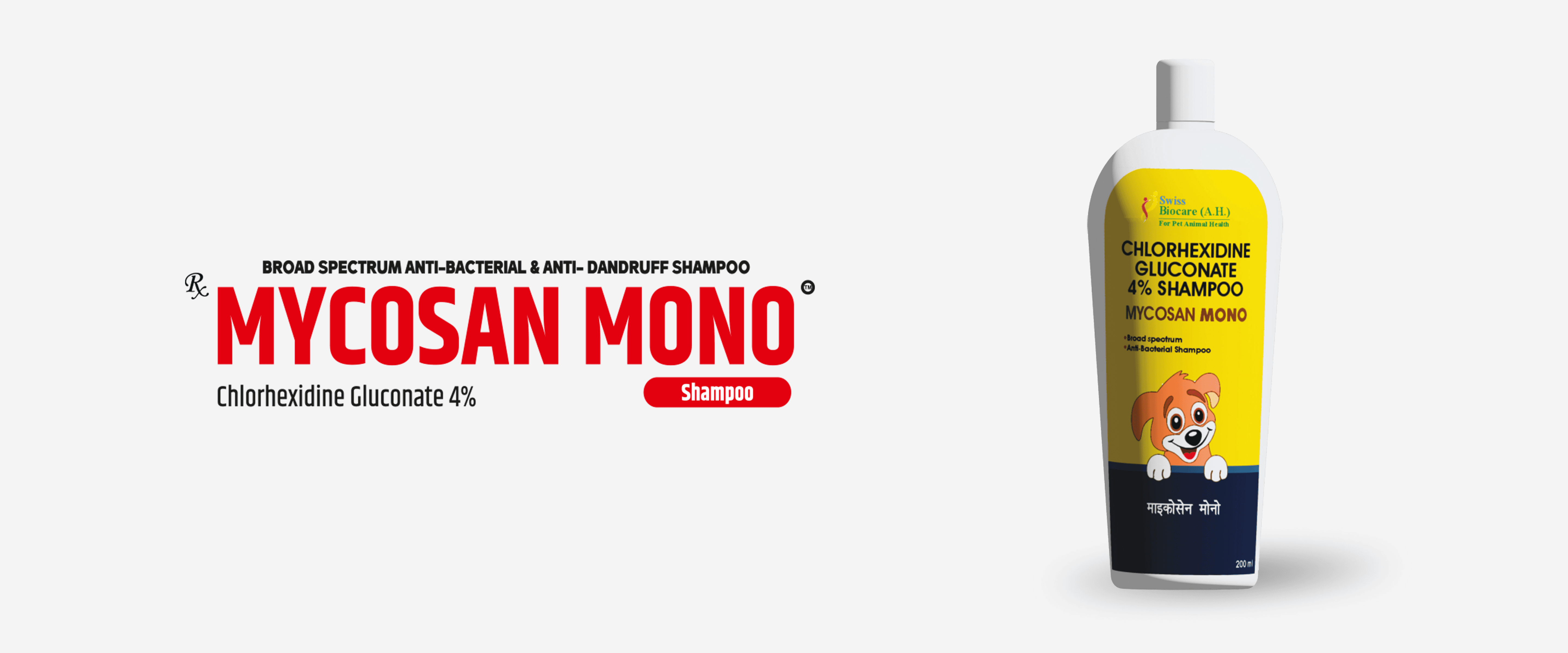 MYCOSAN MONO is a broad-spectrum antibacterial and anti-dandruff shampoo containing Chlorhexidine Gluconate 4%. It helps in treating bacterial, fungal, and yeast infections while providing long-lasting protection for your pet’s skin and coat.