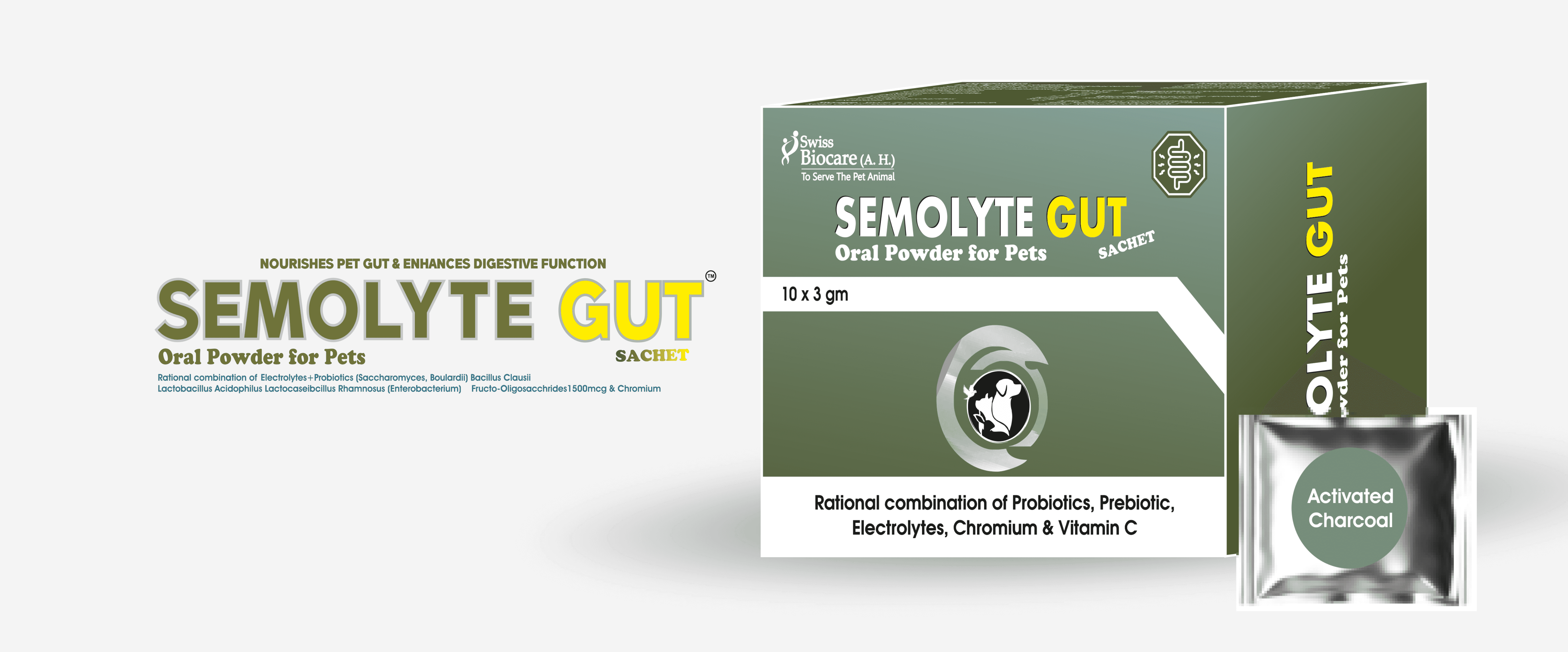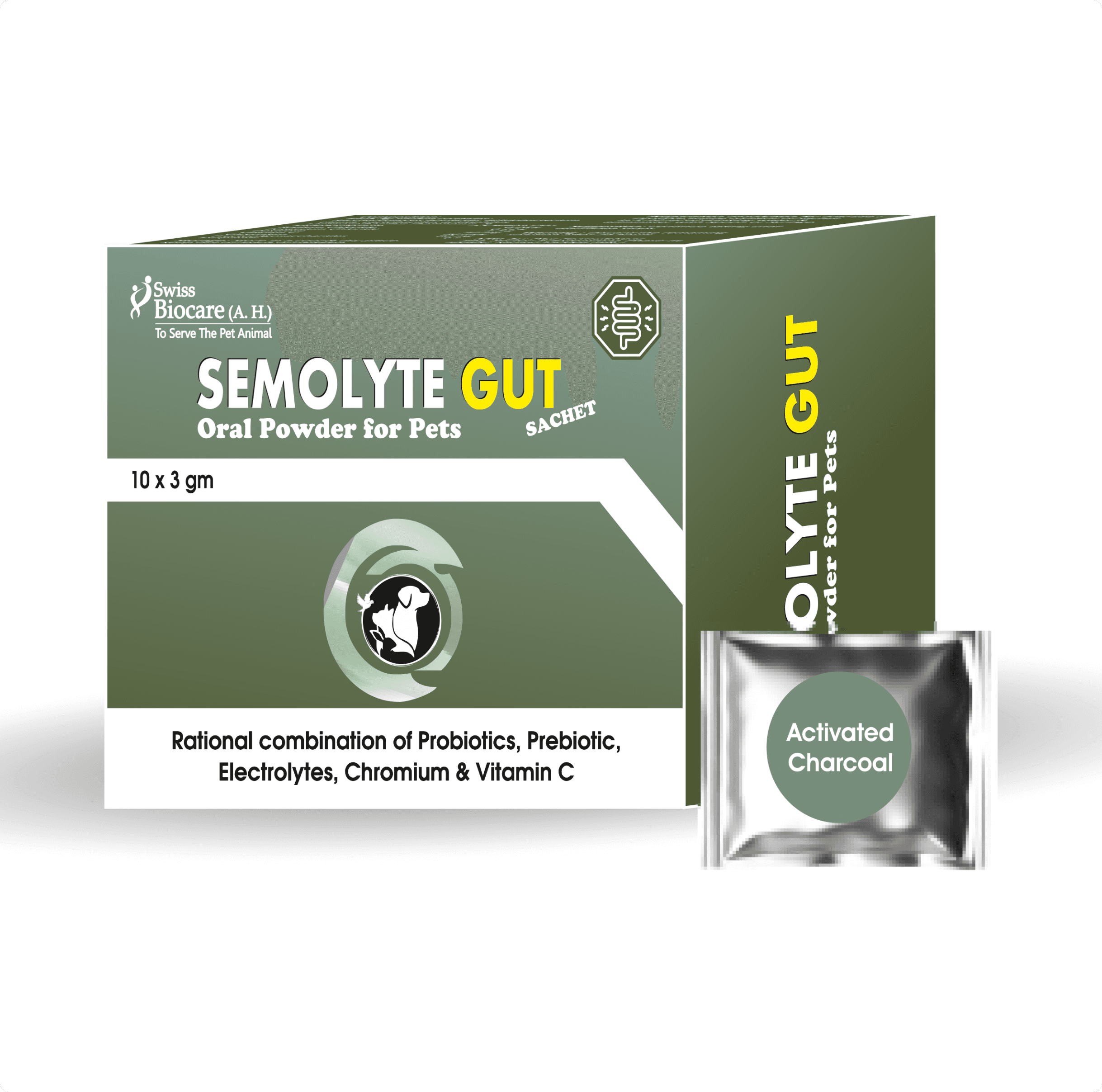 Semolyte Gut is an oral probiotic and prebiotic supplement designed to support digestive health, restore gut flora, and maintain hydration in pets. It helps manage diarrhea, vomiting, bloating, and toxin-related issues, promoting a healthy gut and strong immunity.