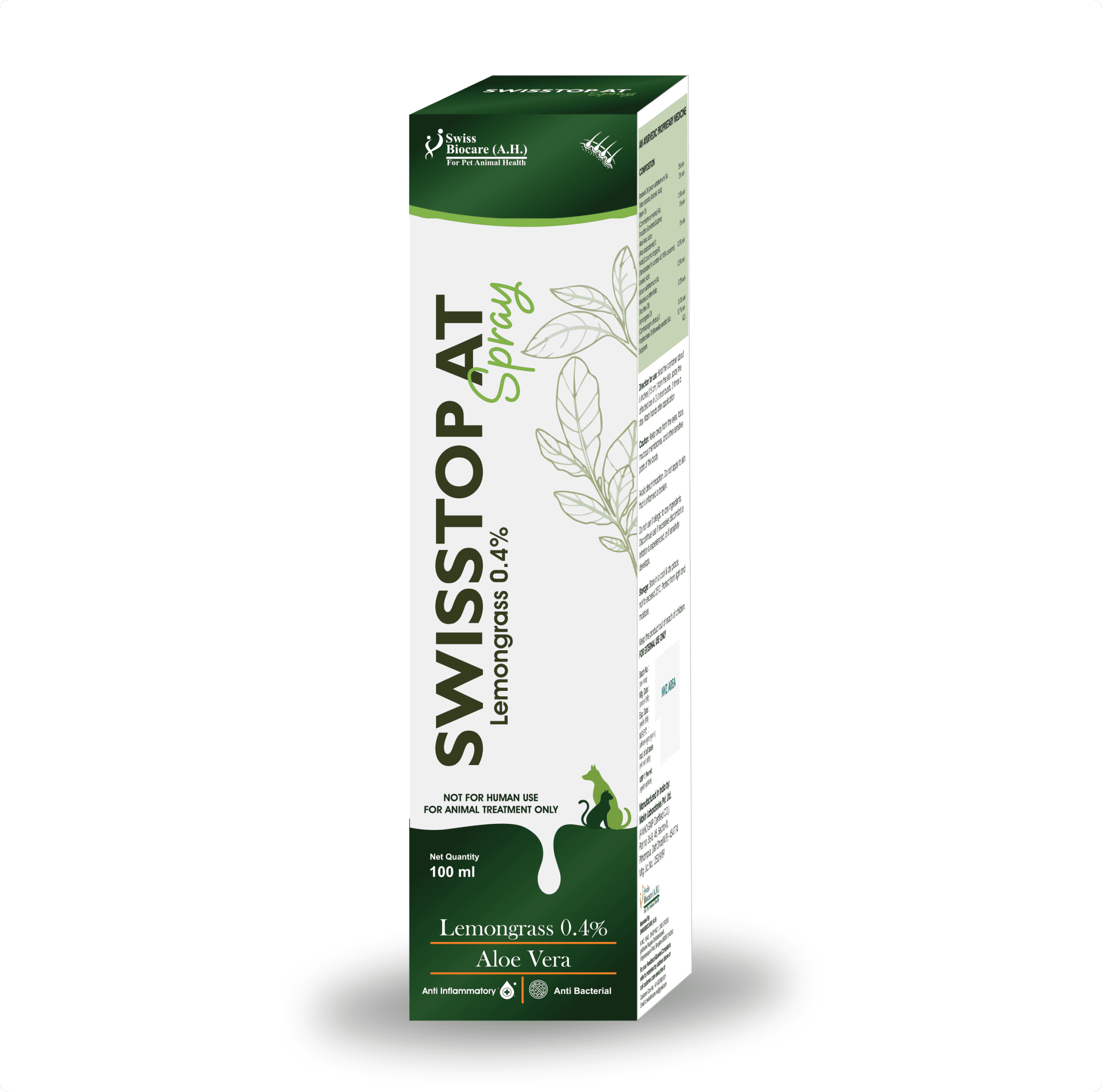 SWISSTOP AT comes in a 100 ml spray format, which is optimal for ease of application and hygienic use. One size fits all skin concerns—whether it’s a rash, wound, or allergy flare-up. The spray allows for even distribution, better absorption, and avoids contamination, making it a safe and practical choice for all pet sizes.
