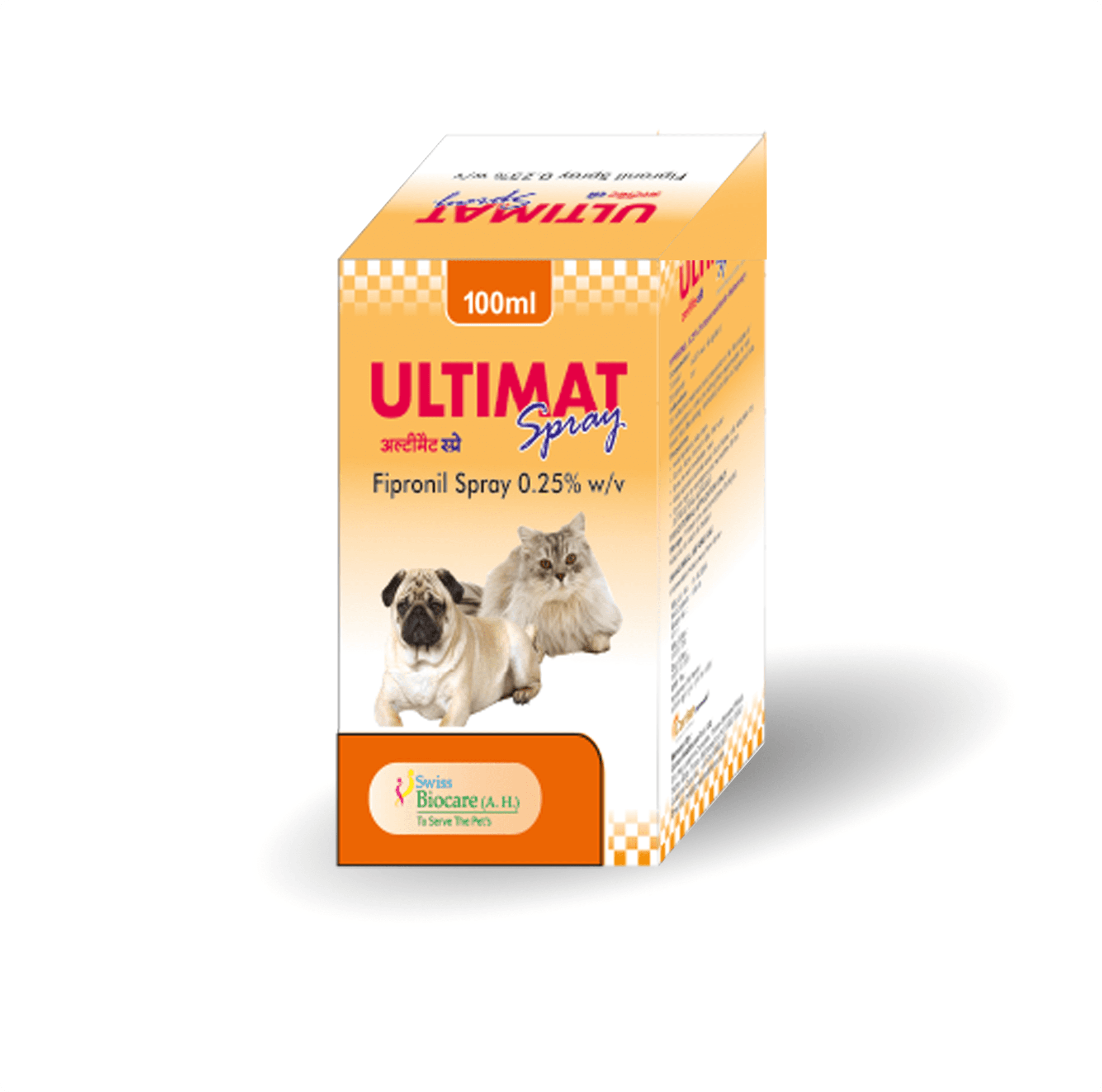 Ultimat® Spray is a Fipronil-based topical treatment designed to eliminate ticks, fleas, and lice on dogs and cats. It provides long-lasting protection by killing parasites on contact and preventing reinfestation.