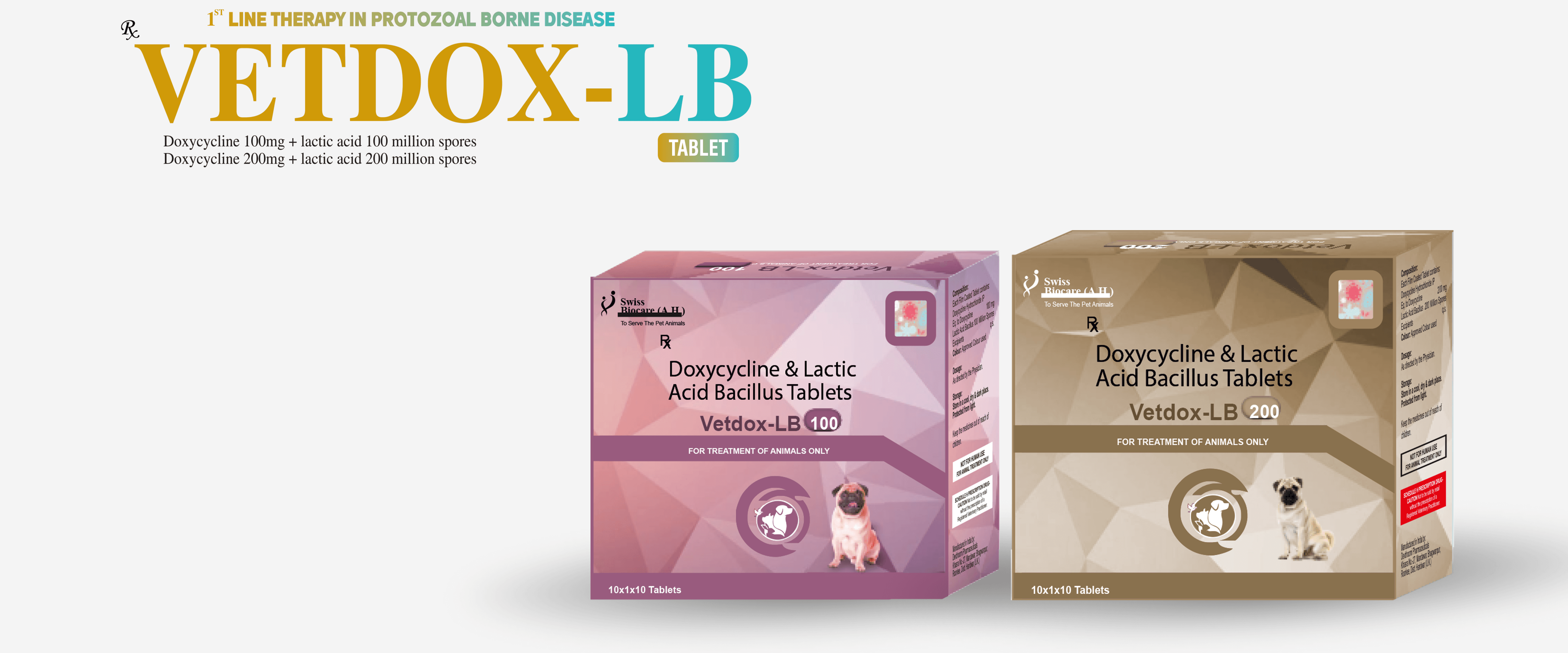 Vetdox-LB (100mg & 200mg) offers broad-spectrum coverage for protozoal and tick-borne infections like babesiosis and toxoplasmosis. Its bilayer formulation ensures stability, while Lactic Acid Bacillus minimizes gut issues. The tiny tablet size allows for easy swallowing, and the two dosage options provide flexibility for different animal sizes and infection severities, making it a veterinarian-preferred choice for effective treatment.
